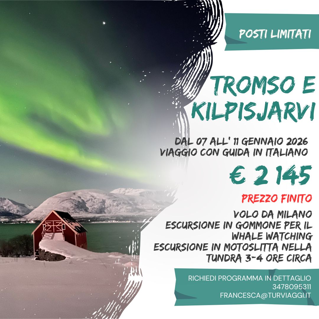09 gennaio, venerdì TROMSO- KILPISJARVI (360 km) e WHALE WHATCHING IN GOMMONE